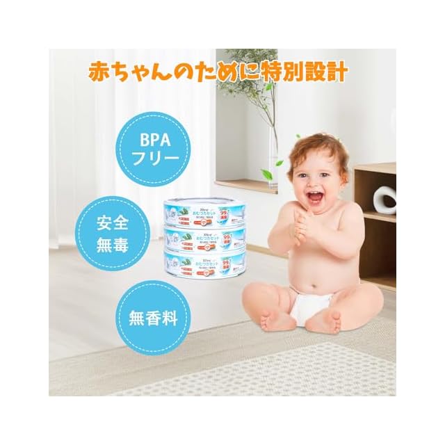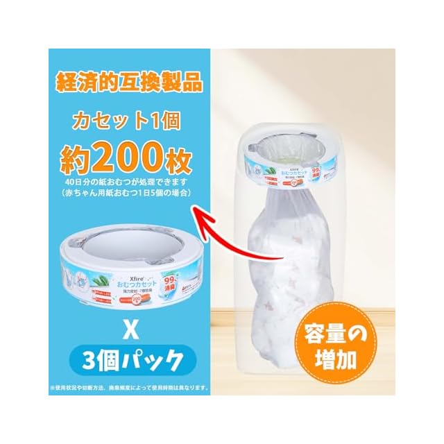 容量アップグレード:1つで取り替え用カセット200枚分のおむつを収納でき、従来品よりも大容量を実現しました。リフィルや交換の頻度を減らし、使用期間を延ばすことが可能です。