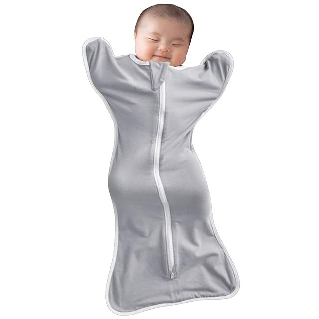 【赤ちゃんを無理に拘束しない設計】赤ちゃんの手足を固定してモロー反射を防止する従来のおくるみとは違い、当社の着るおくるみのユニークなデザインは、赤ちゃんにとって楽なバンザイポーズでぐっすり眠ることができます。