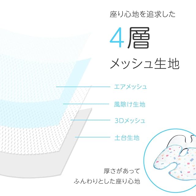 【快適な4層構造メッシュ】エアメッシュ+3Dメッシュを含む4層構造で通気性抜群。汗をかいても背中はいつもさらっと快適!お肌にやさしい素材で、赤ちゃんのデリケートな肌にも安心です。
