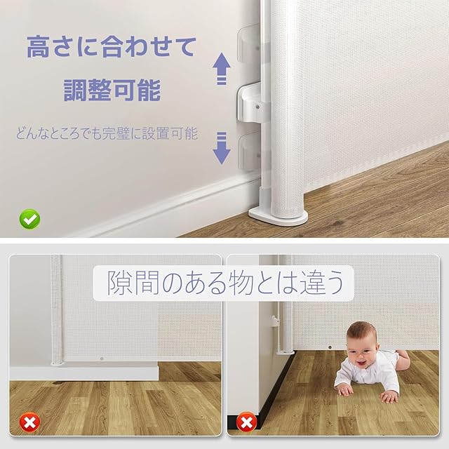 ❀❀様々なドア幅に対応:この100cm以上ロール式ベビーゲートは、使用しない時の収納に便利で場所を取りません。巻き取り式のデザインは、あらゆるサイズのドアフレーム(幅180CMまで)にフィットするので、ベビーエンクロージャーのサイズが合わないという心配はありません。フック接続とメッシュゲートのデザインにより、片手でメッシュゲートを開けることができます。赤ちゃんや幼児、猫や犬などの小さなペットがいるご家庭には、ベビーゲートがおすすめです。