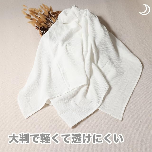 軽量! 大判サイズでありながら軽量で、透けにくいので安心してご使用いただけます。洗うたびに柔らかさが増し、赤ちゃんの肌に優しくフィットします。
