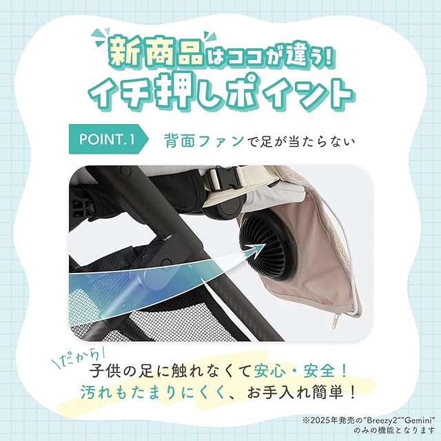 ちゃいなび ファンシート イージーコンフィージェミニ 【EZ-Comfy Gemini】:2023年、2024年と連続でSNSでバズって売り切れ入荷待ち続出!ベビーカーやチャイルドシートに装着して赤ちゃんに優しく風を送るファンシートの2025年モデル、イージーコンフィージェミニです。2個のファンで更に涼しさアップ!過酷な夏も快適に。熱中症対策として。