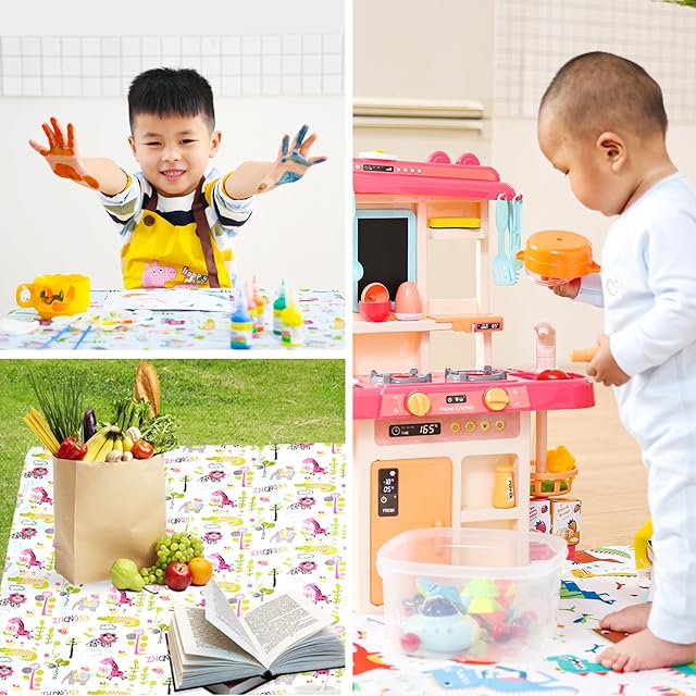 ✨収納しやすい:食べこぼりマットは折り畳んでバッグに収納できるので、お花見、公園やビーチにピクニックする際にも大活躍!お子様に直接地面に触れさせたくないときには便利です。