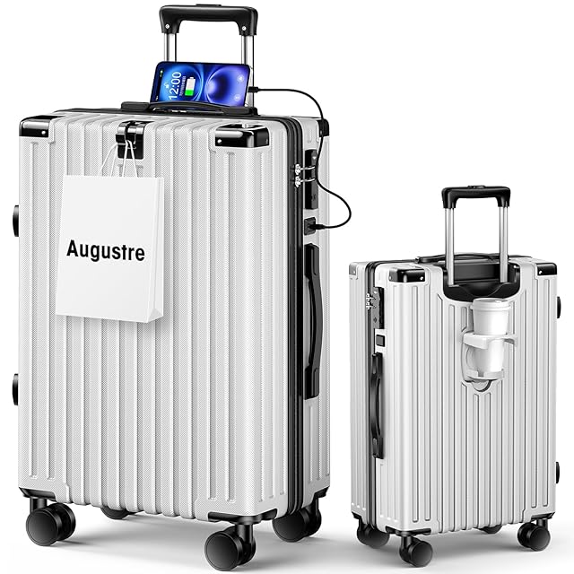 [Augustre] スーツケース 機内持ち込み 超軽量 キャリーケース 大型 軽量 多機能 キャリーバッグ 静音 耐衝撃 ダブルキャスター S/M/Lサイズ カップホルダー付 USB充電機能 隠しフック機能 360度回転 TSAローク搭載 ファスナー式 旅行 ビジネス 出張 (グレー(シルバー), L(7泊~長期旅行/95L)) | つむぎ屋