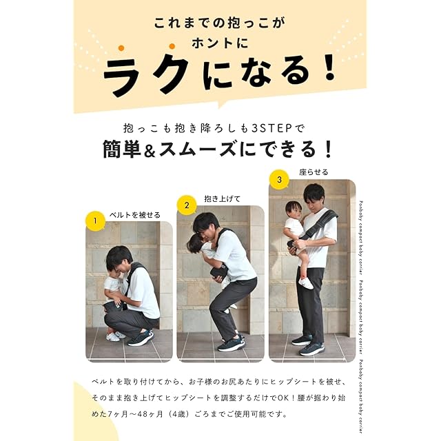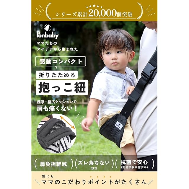 [Ponbaby] 【肩負担軽減 で 長時間】【コンパクト設計でかさばらない】 抱っこ紐 ベビースリング 【左右使える】 だっこひも スリング サイド ヒップシート 7~48ヵ月 バックルがあたらない 抱っこひも (グレー×ブラック) | つむぎ屋