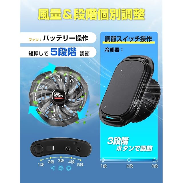 【2025年最新暑さ対策・最大20℃下げる】2025年次世代最新のKEMIMOTO空調作業服登場!周り空気を吸って汗を吹き飛ばすファン付きベストの従来品と違って、最先端半導体冷却器を搭載し、体感温度が最大マイナス20度の冷却機能を発揮、瞬間冷却で超爽快になる空調冷却服です。夏に工事現場、工場、宅配便、交通警察、農業、釣り、スポーツ観戦、ゴルフ、ジョギング、ランニング、登山などのアウトドアに適用。