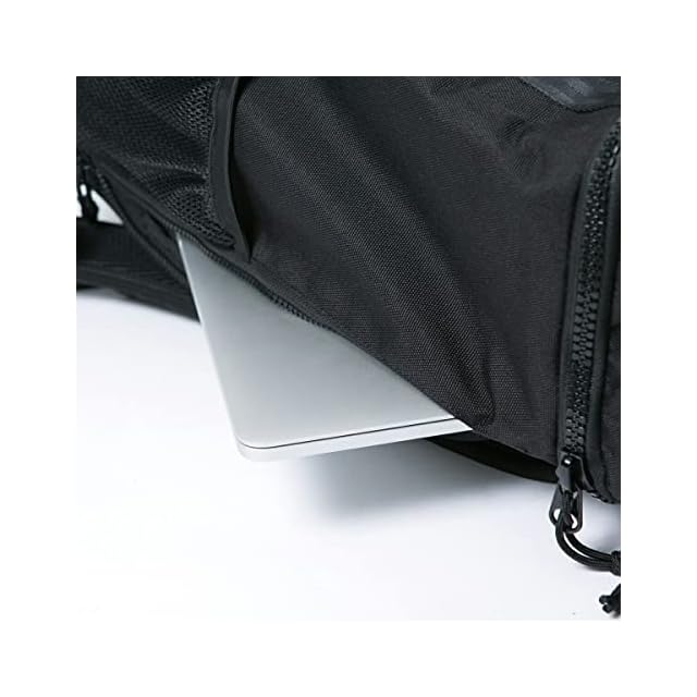 ボックス型のシルエットが特徴的なバッグ。30cmまでのシューズを収納できるボトムポケットをはじめ、効率的に収納スペースを設けています。