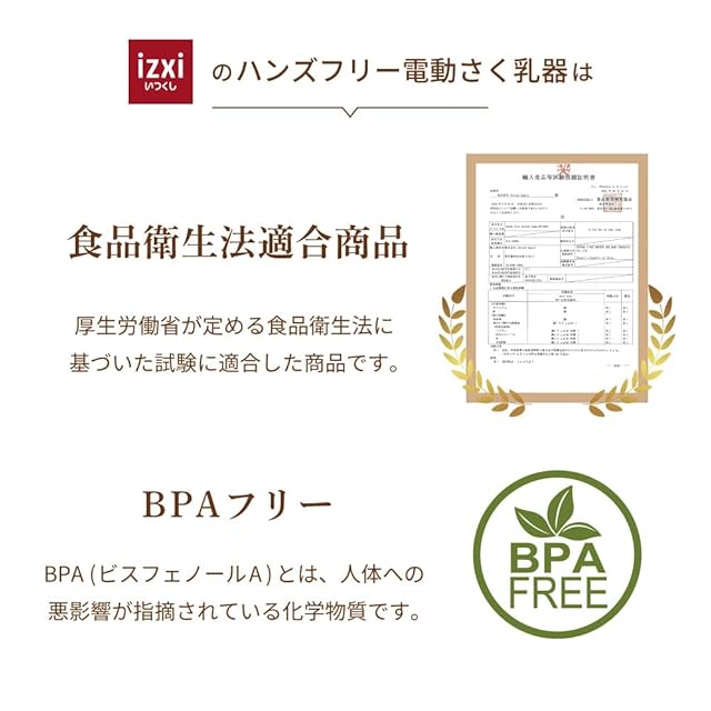 【食品衛生法に基づく試験に適合】厚生労働省令で定める基準に適合する方法で実施した検査で、適合したさく乳器です。もちろん、BPAフリーです。