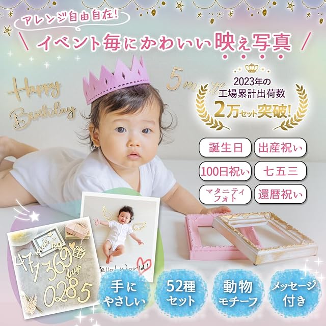 【幅広い用途】イベントに合わせてご自由に組み合わせることができます。お食い初め、お宮参り、100日記念、1歳の誕生日、ハーフバースデー、ファーストバースデー、マタニティフォトにおすすめです。子供だけではなく、大人も是非ご利用ください。銀婚式や金婚式など結婚記念日や、還暦祝いなどにもお使いしていただくことができます。また、ギフトとして、赤ちゃんの出産祝いなどの贈り物にもピッタリです。
