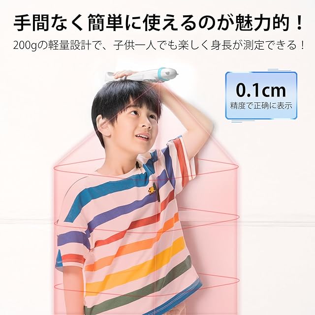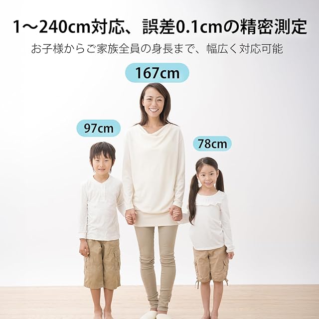 【ボタンを押して3秒で計測】 壁に立ったままでボタン操作可能。 子供の測定を行うだけでなく、自身の身長も簡単に測定できます。 家族の成長の一瞬一瞬を大切に記録しましょう!