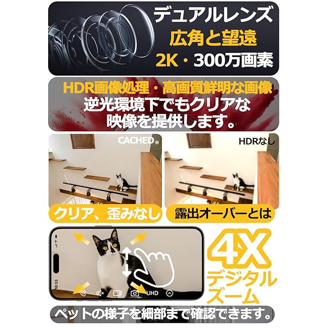【2K・HDR画像処理・300万画素・ペットカメラ】ペット見守りカメラ で重要なのは鮮明な画質です。高精細映像で細かいところまで正確に見ることができます。4倍ズームが可能。