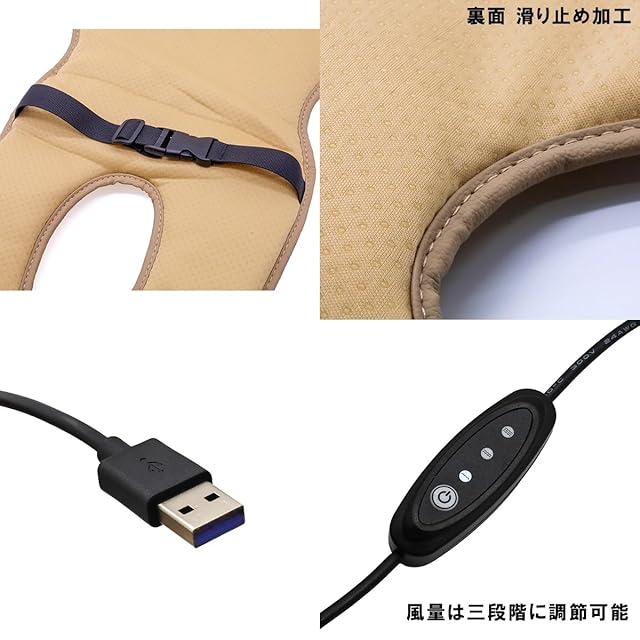 動作時間目安:モバイルバッテリー5000mAh使用時 強で連続作動時間約10時間 弱で連続作動時間約18時間 チャイルドシートはサイズを確認の上お取付ください。
