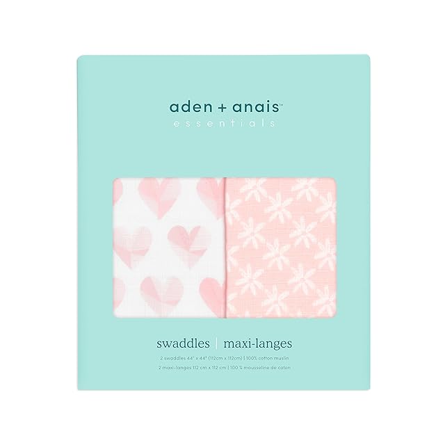 aden + anais エイデンアンドアネイ おくるみ ピースオブマイハート 2枚セット 112×112cm モスリンコットン スワドル 新生児 出産祝い SWADAEESWC20022 | つむぎ屋