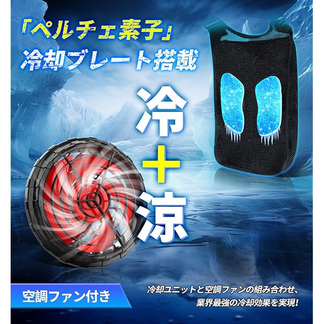 KLIFE ペルチェ ベスト 空調ファン付き バッテリーセット【2025業界初&60000mAh/222Wh合計大容量&冷却ブレート付き】冷却ベスト ペルチェ素子式 強弱モード 瞬間冷却 最大-30℃冷やす 夏用 冷感作業服 リュック型 前後分離使用可 ペルチェベストと空調作業服合体 冷却服 ワークマン 薄型&コンパクト フリーサイズ 静音 水洗い可 現場 外仕事 釣り 暑さ対策グッズ