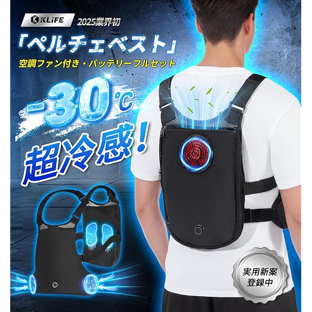 【2025業界初&KLIFEファン付きペルチェベスト】 2025猛暑日(35℃以上)が過去10年で約1.5倍に增加。高温時、従来のフアン付きツエアは冷却効果が弱まる課題となっています。KLIFEは「年々深刻化する猛暑に立ち向かい、誰もが自由に動ける未来へ」の初心を専念し、空調ファンとペルチェ素子冷却ユニットを組み合わせ、「ファン付きペルチェベスト」を開発しました。まるで着るクーラー熱風を冷風に変換し全身を快適に冷却し、まさに猛暑を冷却する未来のウェア!(※実用新案登録中)