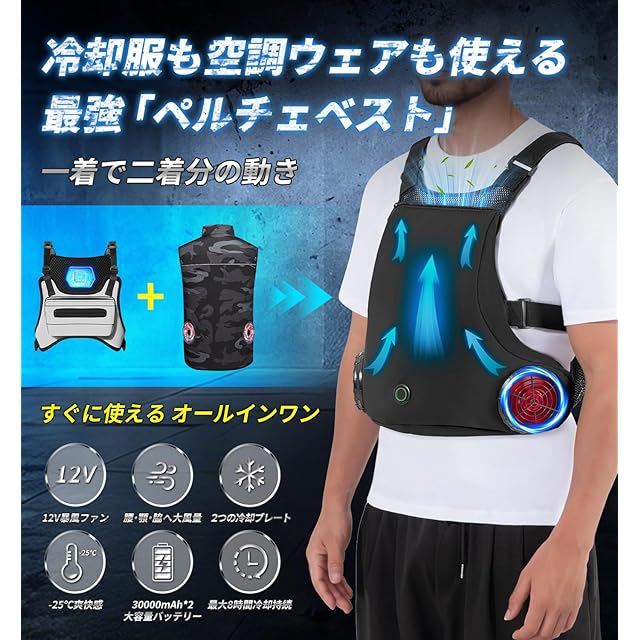 [KLIFE] ペルチェ ベスト 空調ファン付き バッテリーセット【2025業界初&60000mAh合計大容量&冷却ブレート付き】 冷却ベスト ペルチェ素子式 強弱モード 瞬間冷却 最大-30℃冷やす 夏用 冷感作業服 リュック型 前後分離使用可 ペルチェベストと空調作業服合体 冷却服 ワークマン 薄型&コンパクト フリーサイズ 静音 水洗い可 現場 外仕事 釣り 暑さ対策グッズ | つむぎ屋