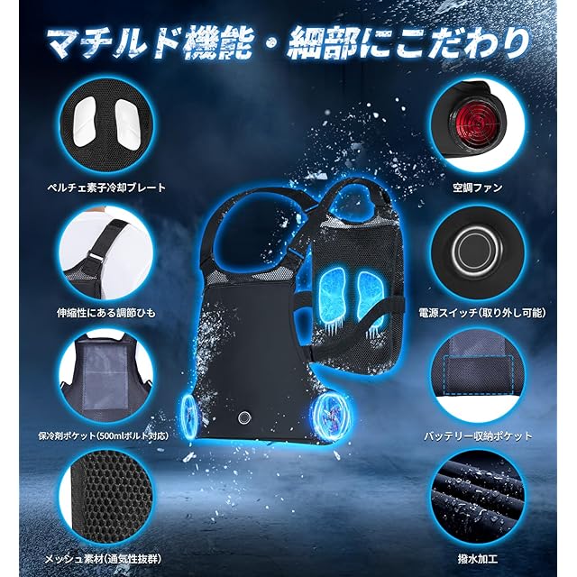 【マチルド機能性&フリーサイズ&超絶進化冷房服】撥水加工&高耐久素材採用、伸縮性にあるストレッチ素材が抜群のペルチェのフィット感を提供します。M~4Lまでの豊富なサイズ展開、着用感とデザイン性を両立!日本人体型に最適設計です。静音性に優れ使用シーンを選ばらず、直感的なボタン操作でシーンに合わせた最適な温度設定が可能で、夏の全てのライフスタイルにマッチします。前後分離式で、家族たちと涼しさをシェアできます。ファンと冷却器が着脱簡単で、洗濯ラクラク♪ 届いてすぐに使えるフルセットの内容:ペルチェベスト本体*1、12V扇風機*2、5V扇風機*1、冷却ユニット*2、ショルダー調節ひも*2、30000mAhバッテリー*2、取扱説明書兼書*1。フリーサイズで男女兼用仕様です。エアコンが使用できない状況での作業者のための熱中症対策商品。工場・林業・農業・建築作業・溶接作業などの高温環境に対応して一気に涼しくなります。KLIFEペルチェベストを着用して、高温環境でも「リラックス」して作業ができ、効率を向上させます。