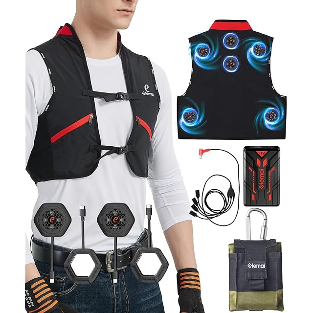 [elemai] ペルチェベスト【2025夏新登場&ペルチェ素子冷却技術】冷却ベスト(M~3XL) バッテリーセット 空調冷却服 瞬間冷却 クールベスト 薄型&コンパクト フリーサイズ 静音 ワークマン 空調作業服と併用可 水洗い可 現場 外仕事 釣り 暑さ対策グッズ