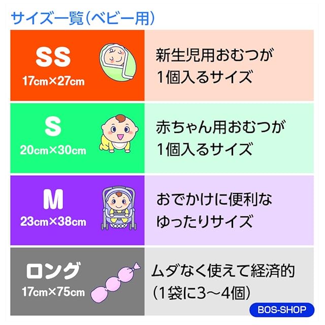 商品名:おむつが臭わない袋 BOS ボス ベビー用 SSサイズ 200枚×2個セット 防臭 袋 外出・防災用にも最適 【袋カラー:ピンク】