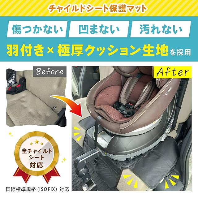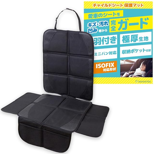 商品名:sororito チャイルドシート 保護マット 【羽根付き・極厚クッション】 カバー isofix対応 [保育士推薦] 黒