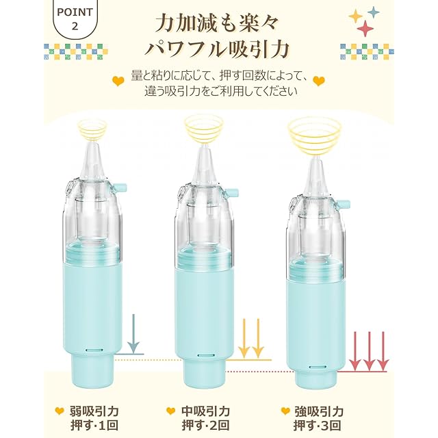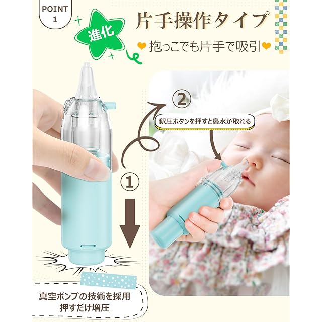 [モノンズ] 鼻 吸い 器 簡単よく取れる 片手操作 ハンディ 手動 柔らかいシリコーンノズル 真空ポンプ式 静音設計 お手入れ簡単 コンパクト