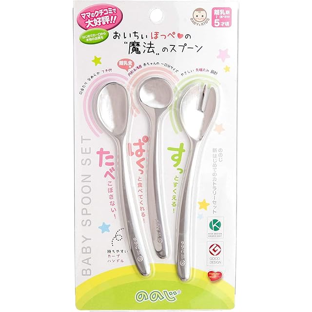 商品名:ののじ 新はじめての カトラリーセットA 右手用 3本セット 離乳期(食べさせ用)~5才頃用 CUT-L2L1015a