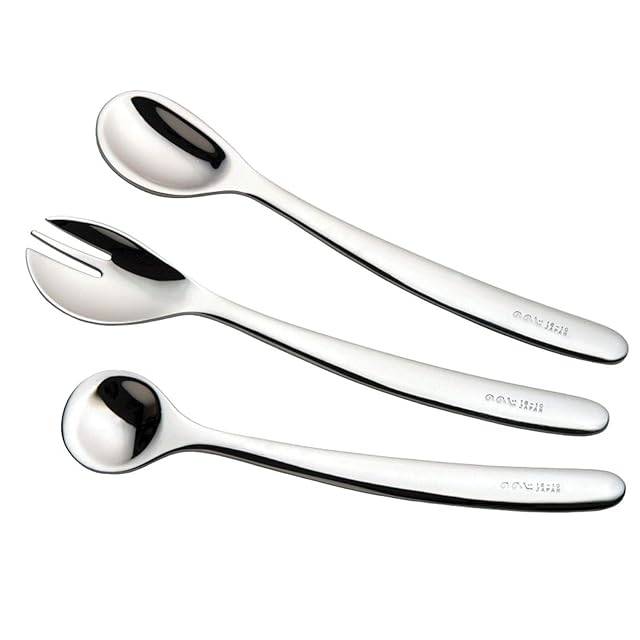 [本体サイズ] 寸法 重量:【離乳食スプーン】13.8×2.5cm 22g 【ソフトスプーン 右 幼児用】15×2.5cm 25g 【カットフォーク 右 幼児用】15×2.6cm 25g