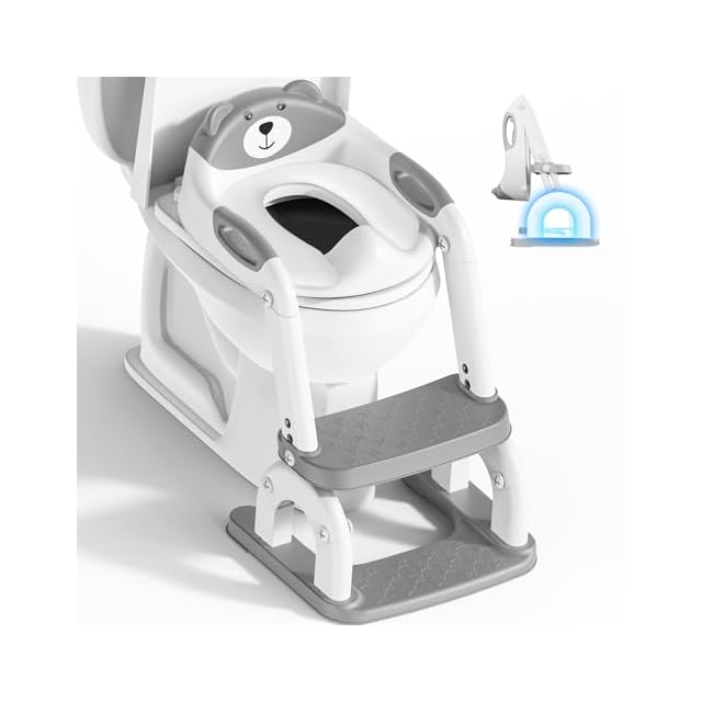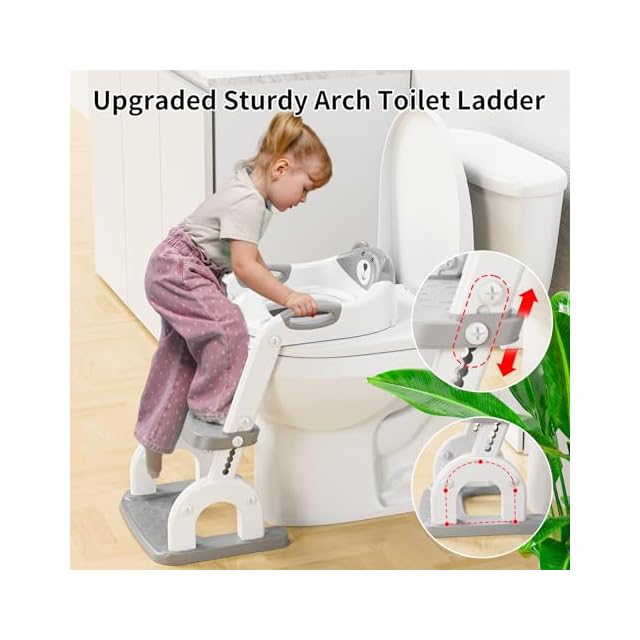 商品名:トイレトレーニング階段付きの子供補助便座,アップグレードされた丸アーチ型補助便器はしご, 8段階高さ調整、折りたたみ式設計、快適で安全な幼児補助便座,子供用トイレ 踏み台