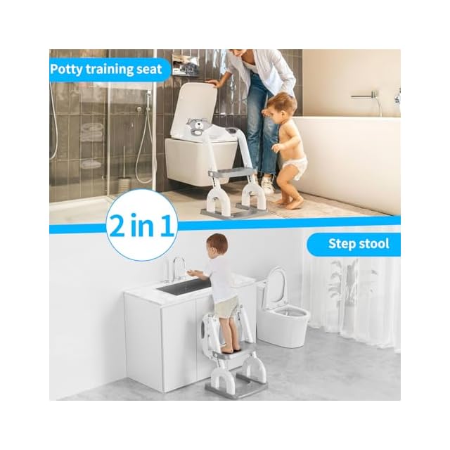 調節可能&多用途 この子供用便座には8つの調節可能な穴位置があり、この2イン1便座はお子様の快適さとニーズに合わせることができます。 子供用便座としてはもちろん、シンクやトイレに届く踏み台としてもお使いいただけます。