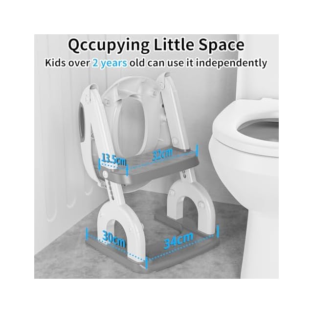 より安全な三角形構造 安定した三角構造の台座と滑り止め設計により、安定性を確保し、事故を防ぎます。 このトイレ階段の階段の表面は32cm x 13.5cmに拡張されており、お子様は1~3歳の幼児でも安心してこのトイレトレーナーを使用できます。