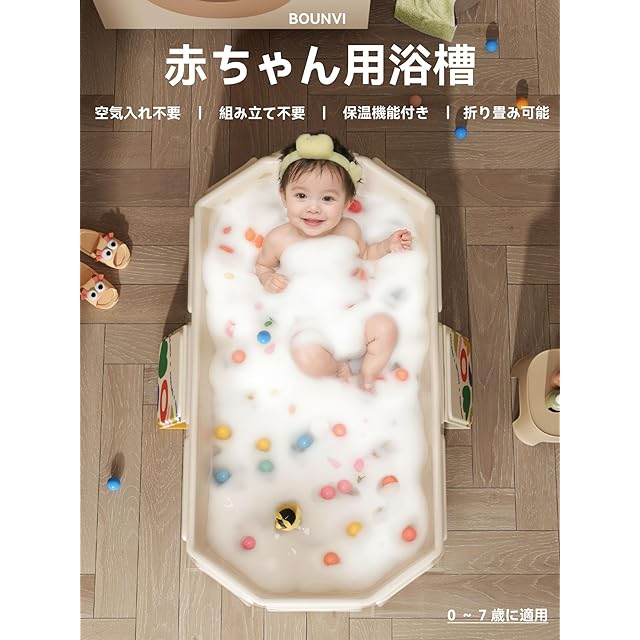 【高品質素材5 層断熱構造】:当社の製品は CPC 認証と CE 認証を取得しており、ご安心してご使用いただけます。使用中にはフタル酸エステルなどの有害物質を発生せず、お子様をしっかりと守ります。最高の保温効果を実現するため、製品には 5 層の保温素材が採用されています。これにより、お子様がお風呂に入る際に頻繁にお湯を追加する必要がなく、温かく快適な入浴体験を提供できます。