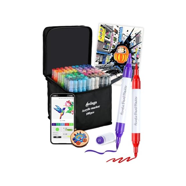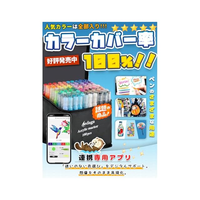 アクリルマーカー 100色セット 色付き号水性ペン 無料アプリ付き カラーペン 毒性無し 防水 速乾 耐光 太細両端 プラ板/ガラス/陶器/木材/布/石に書ける ハンドメイド DIY 子供用 学校 絵画教室 プレゼント | つむぎ屋