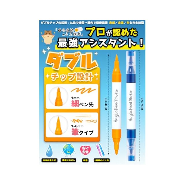【多表面使用】紙、カード、金属、岩画、木材、プラスチック、キャンバス、織物、陶器などを含む各種表面に適用する。高品質の不透明な水性インクは無臭で酸がなく、芸術品の寿命を確保します。アクリルマークペンは毒性がなく、防水、速乾、耐光性があります。