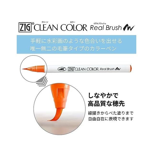 毛筆タイプのカラーペン「クリーンカラーリアルブラッシュ」6色セット