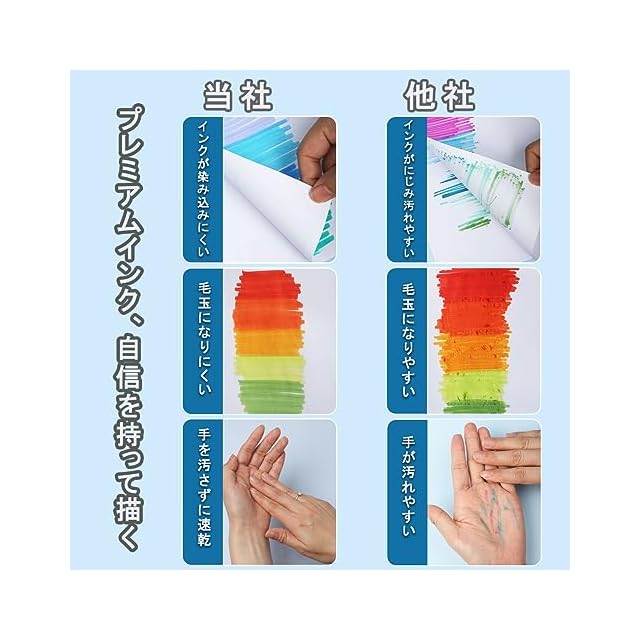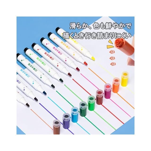 【貼り付け簡単、握り心地】丸いペン本体で作られています、人間工学に基づいた握りやすいデザインで、長時間使用しても指が疲れません、新デザインのペンはとても塗りやすく、キャップを開けてペンを使用するだけです。インクの量が豊富なので、長くお使いいただけます。