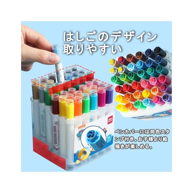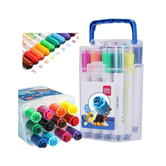 DELI 水性ペン 12色 アートマーカー 子供用の太い丸ポール 漫画シールペンキャップ スムーズな色の塗布 手を汚さずに速乾 水性ペン ウォッシャブルカラーペン カラーペンセット (12色セット) | つむぎ屋