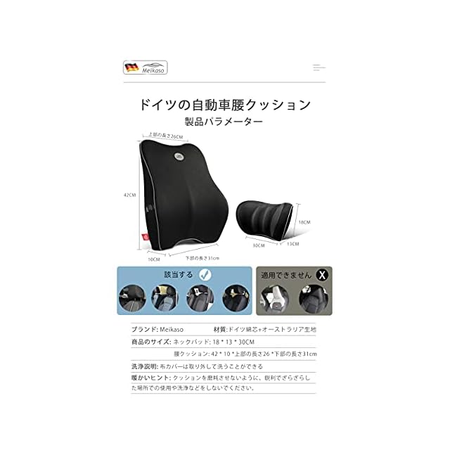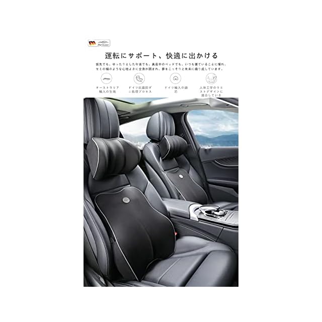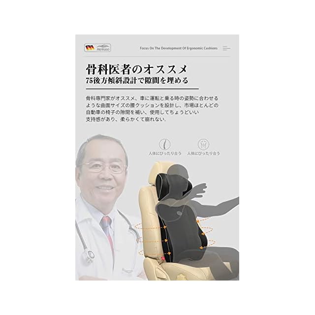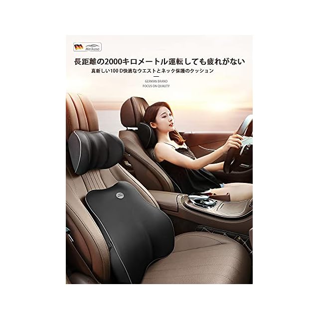 Meikaso 低反発腰クッション ランバーサポート 通気性 姿ネックパッド 車首 ヘッドレスト 100D高密度 低反発 腰サポート 背もたれ 頸椎サポート枕 長時間運転に 車の旅行中/オフィス 椅子/自宅 | つむぎ屋