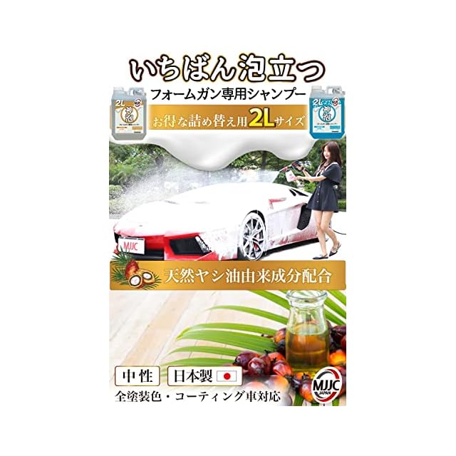 【お得な2L詰め替え用ボトル】✨フォームガン専用、MJJC史上いちばん泡立つカーシャンプー✨ もこもこのクリーミーな泡で、愛車を優しく包み込みます。