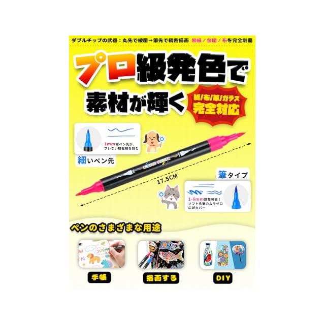 【多表面使用】紙、プラ板、カード、金属、岩画、木材、プラスチック、キャンバス、織物、陶器などを含む各種表面に適用する。高品質の不透明な水性インクは無臭で酸がなく、芸術品の寿命を確保します。アクリルペンは毒性がなく、防水、速乾、耐光性があります。