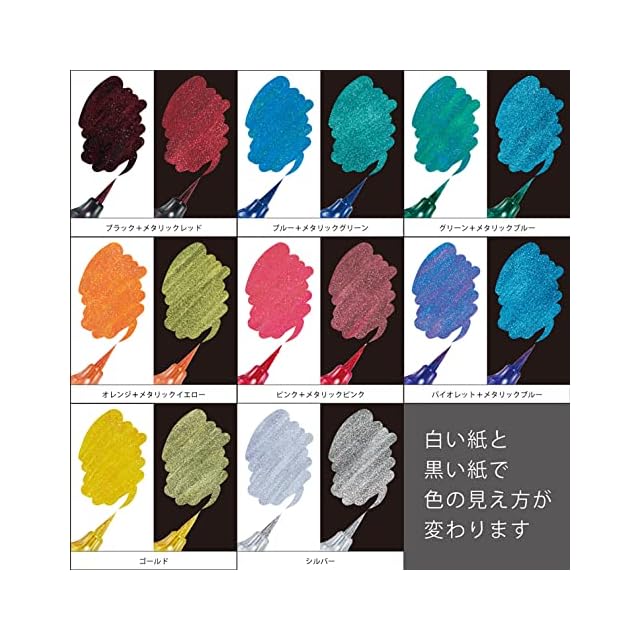【特長】見る角度によって色が変わる特殊なインキの筆ペン