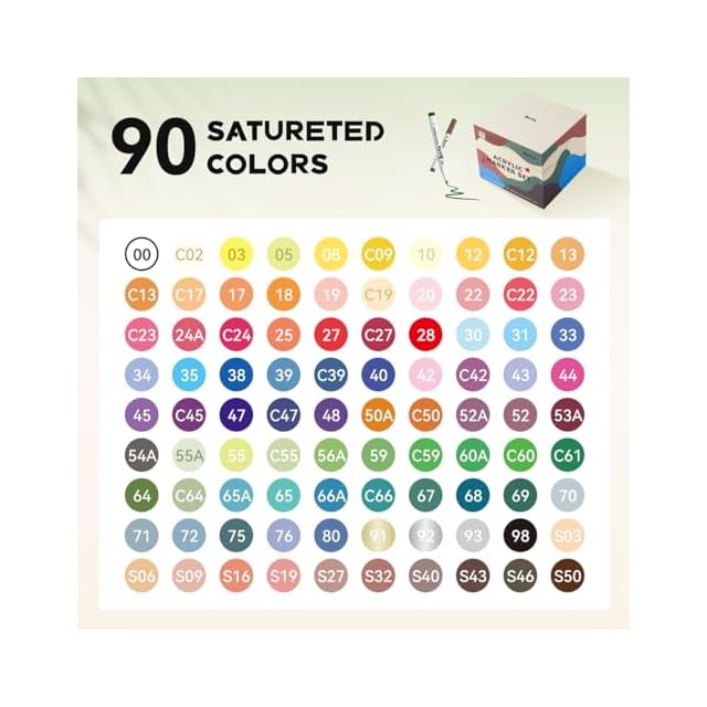 Arrtx90色アクリルペイントマーカーセット-Arrtx60A&60Bセットと比較して、このセットは60Aレギュラーカラーセットから32色、60Bアニメカラーセットから33色、さらに25色の新色が追加されています。このマーカーセットは、創造性のために、より多くの新しい色合いを提供します。ご注意:初めてパッケージを開けるとき、アクリルマーカーを置く順序は、カラーカードのステッカーの順序と同じです。
