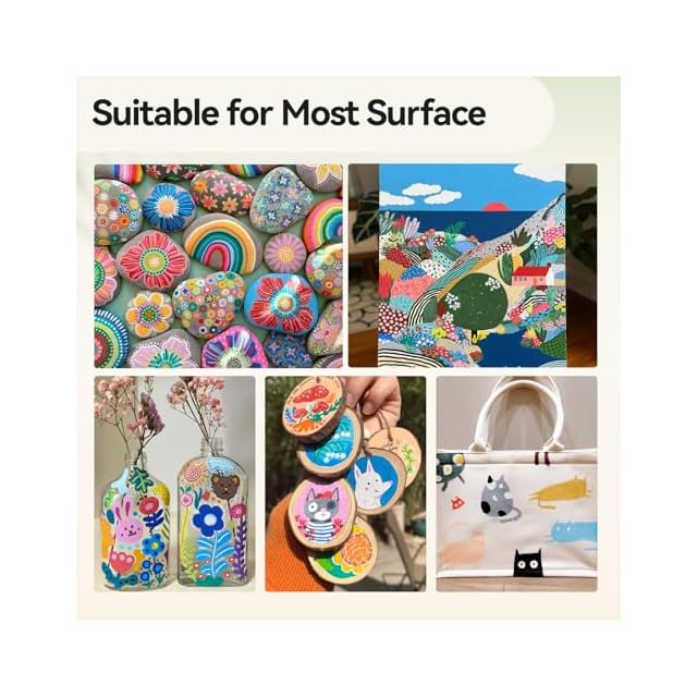 [複数の表面でうまく機能】Arrtxアクリルペイントペンセットは水性の滑らかなインクを提供し、ロックペイント、金属、紙、木、プラスチック、キャンバス、布、セラミックなど、様々な表面で優れたカバレッジを提供します。クリエイティブな可能性は無限大です。