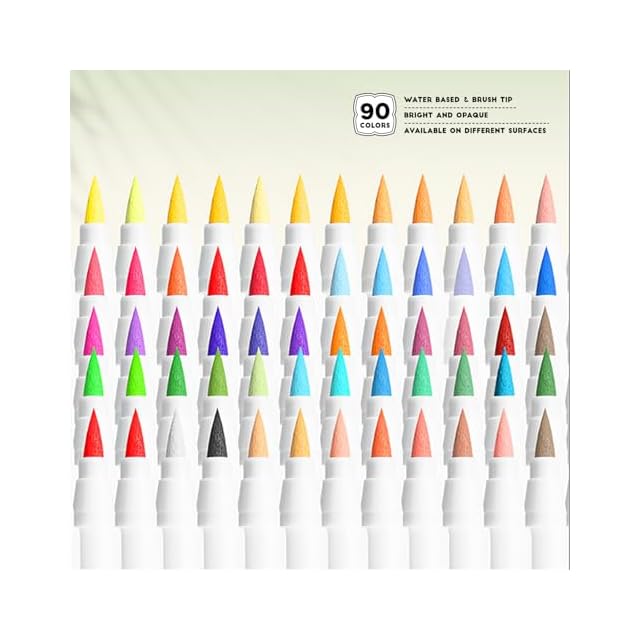 Arrtx 90色 ペイントマーカー ペイントペン アクリルペイントペン アーティスト 大人 塗り絵 描画用 - ロックペインティング、木材、キャンバス、DIYクラフト作成用の追加ブラシチップ アート用品 | つむぎ屋