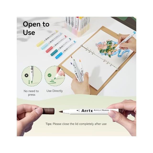 安全で無毒 - Arrtx 描画マーカーセットは、無毒、無味、防水性、耐高温性のある水性環境保護顔料インクを採用しています。 高品質の認定インクを使用したこのペイント ペンは安全で、子供から大人まであらゆる種類の DIY ペイントに適しています。