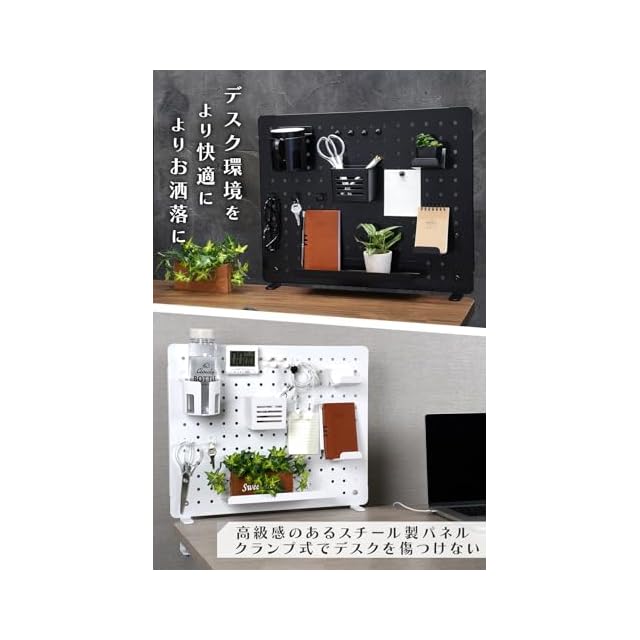デスク環境をより快適によりお洒落に!デスクに挟み込むだけで取付可能なクランプ式ペグボード。デスク上に散乱している物をペグボードに載せてデスク広々、生産性向上、お洒落で快適なデスク環境になります!