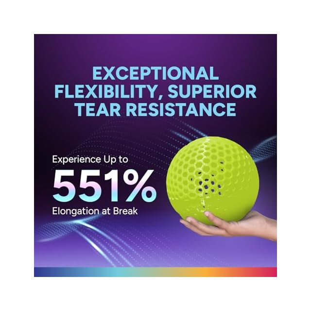 【優れた柔軟性】 ショア硬度95AのTPUは、優れた柔軟性を備えており、曲げや伸縮を必要とするさまざまな用途に適しています。この柔軟性により、さまざまな形状や動きに容易に適応する部品の作成が可能で、スマホケース、ウェアラブルデバイス、その他の柔軟なデザインに最適です。