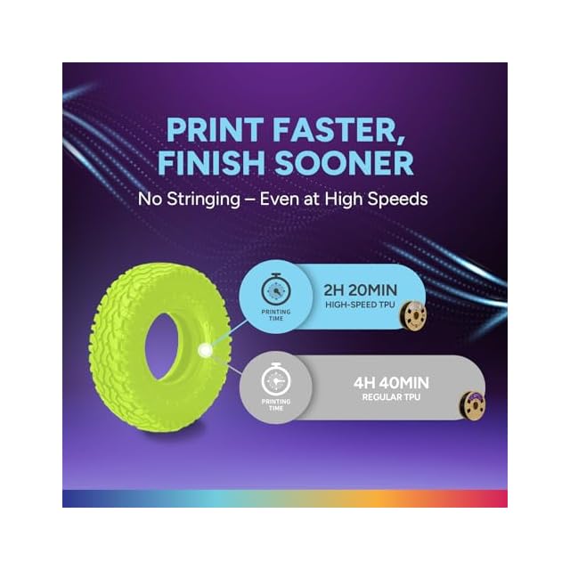 【高速95A TPUフィラメント】 オーバーチャーのハイスピードTPUフィラメントは熱可塑性ポリウレタン(TPU)ベースのフィラメントですが、通常のTPUフィラメントよりも5倍高速に印刷できます。 Shore硬度95Aを特徴とし、オーバーチャーのハイスピードTPUは柔軟性と弾力性の理想的なバランスを実現します。