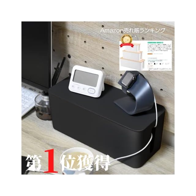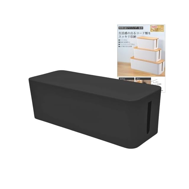 ケーブルボックス 【monoマガジン掲載!】 配線隠し ケーブル 収納 コード 収納 コンセントボックス 配線ボックス コンセント収納 コードケース 配線 ケーブル隠し コードボックス 整理収納アドバイザー監修 mugenbo (L ブラック 単品)