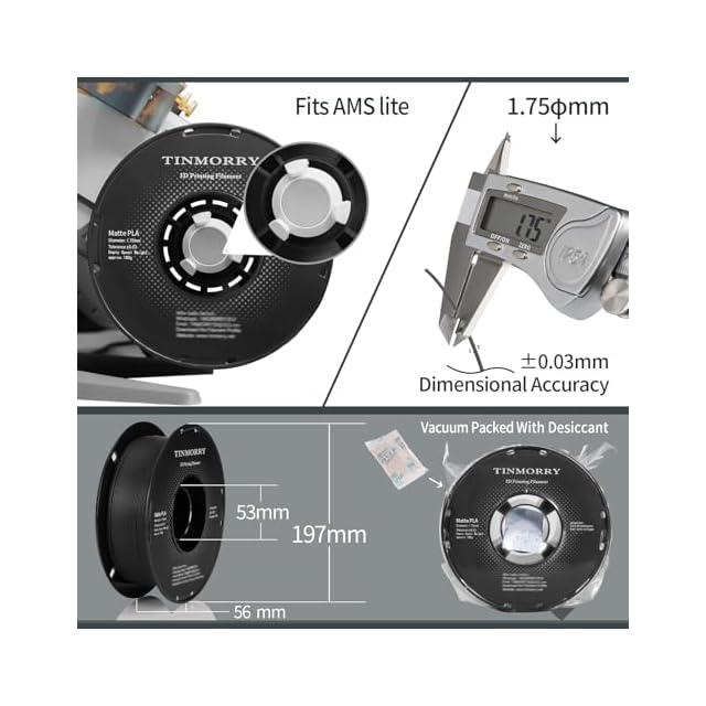 TINMORRY PLA フィラメント, マットPLAフィラメント1.75mm, 3dプリンター フィラメント 1Kg, Bambu Lab FDM 3DプリンターおよびAMSと100%互換性があります (3D Printer Filament Black) | つむぎ屋