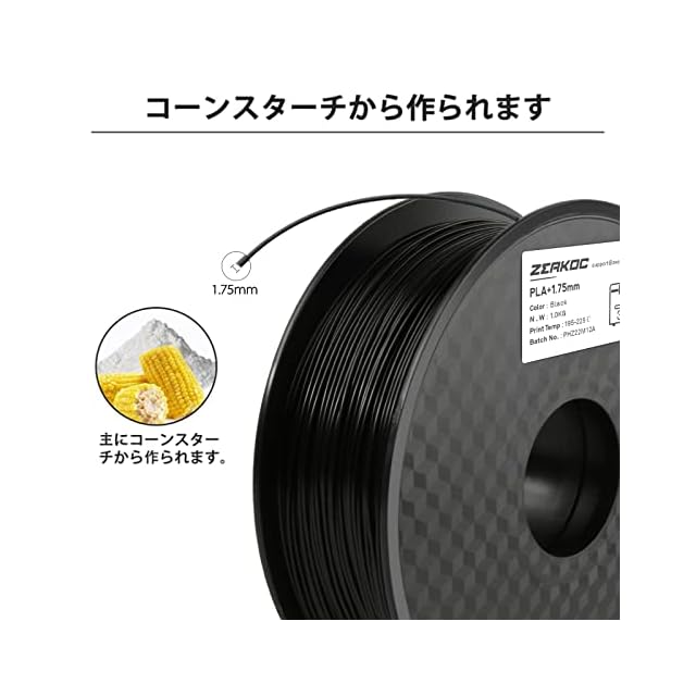 ZEAKOC PLA Plus 3Dプリンター用フィラメント FDM 3Dプリンター用 フィラメント 寸法精度+/- 0.03mm PLA樹脂材料 造形材質 1.75mm径 正味量2.2 LBS(1KG)スプール3Dフィラメント 3Dプリンター3Dペン用 スプール造形材料 (ブラック)